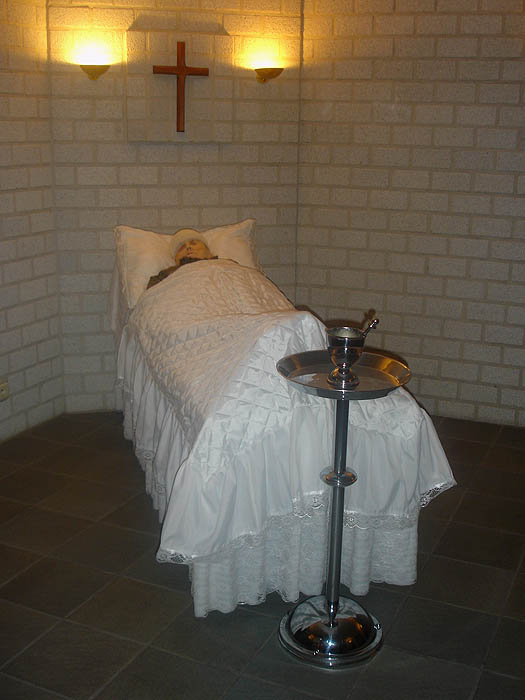 In de week tussen haar overlijden en de begrafenislag Rebecca opgebaard bij begrafenisondernemer Wim Vanderlinden. OPGELET: Indien U op de verkleining hiernaast drukt krijgt U een zeer confronterend tafereel te zien. Gelieve daarop voorbereid te zijn indien U klikt! |