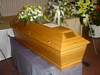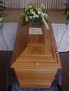 Twee foto's van de kist, op de herdenking in 'De Moriaan' in Alsemberg. |